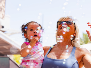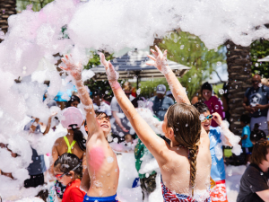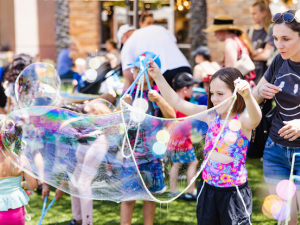This event is free and open to the public! Bubble stations are available on a first come, first serve basis. Goggles, swimsuit and water shoes are recommended for the Splash Pad Foam Zone. Please come prepared for the anticipated weather. We’ll provide the misters, shady zones and Splash Pad. You provide the water, sunscreen, etc. Event activities will occur all the way from AMC Theatres to the Barnes & Noble Courtyard. There is no check-in required or specific path throughout the event. Enjoy as much or as little as you want.